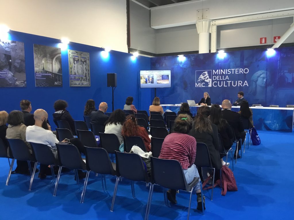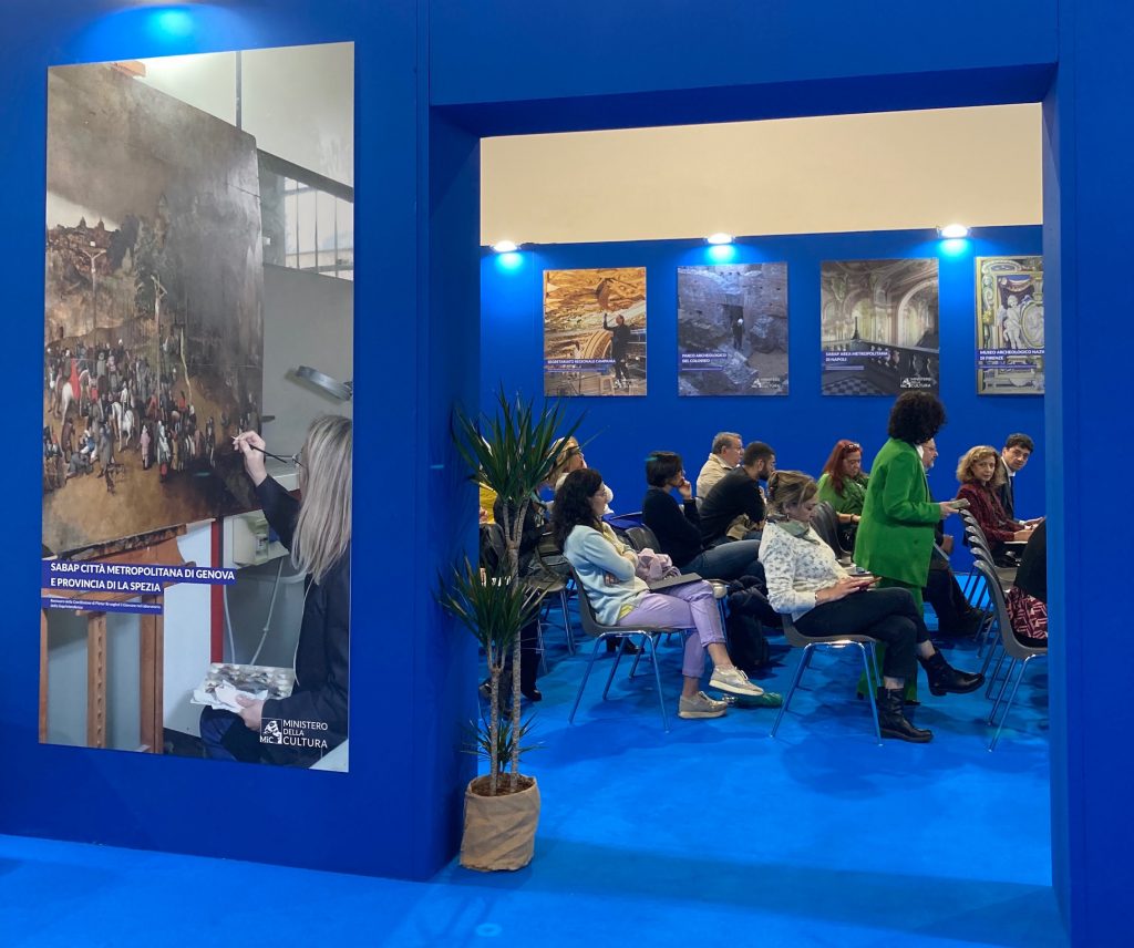 Mercoledì 10 maggio dalle 12.30 alle 13.30, nello spazio riservato al Ministero della Cultura dedicato ai Convegni, sono intervenuti la Soprintendente, Cristina Bartolini; il Comandante Carabinieri Nucleo Tutela Patrimonio Culturale di Genova, Maggiore Alessandro Caprio; la funzionaria storica dell’arte, Rossana Vitiello; la funzionaria restauratrice Valentina Tonini e il restauratore specializzato in restauro supporti lignei dei dipinti su tavola Alberto Dimuccio.